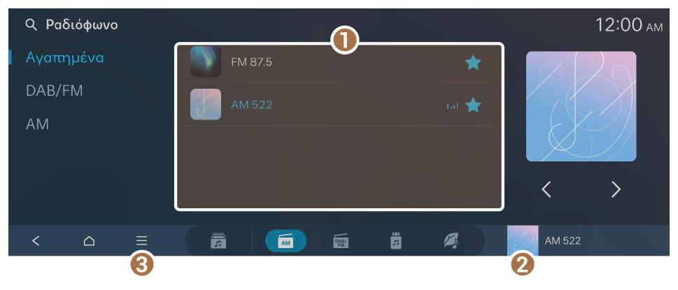 - Εμφανίζει την οθόνη προγράμματος αναπαραγωγής AM.