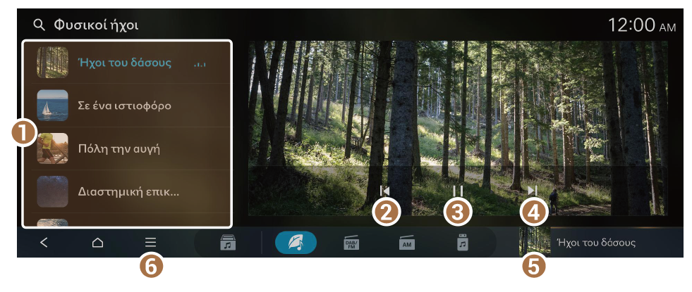 - Εμφανίζει την οθόνη προγράμματος αναπαραγωγής φυσικών ήχων.