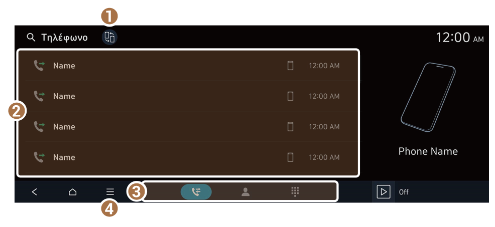 - Κατα-φόρτωση: κατεβάστε τη λίστα με τις πρόσφατες κλήσεις από τη συνδεδεμένη κινητή συσκευή.