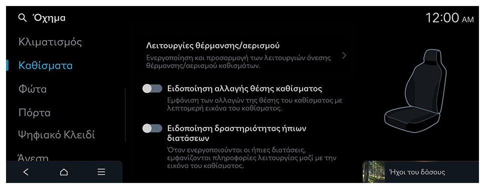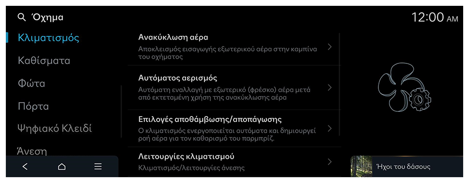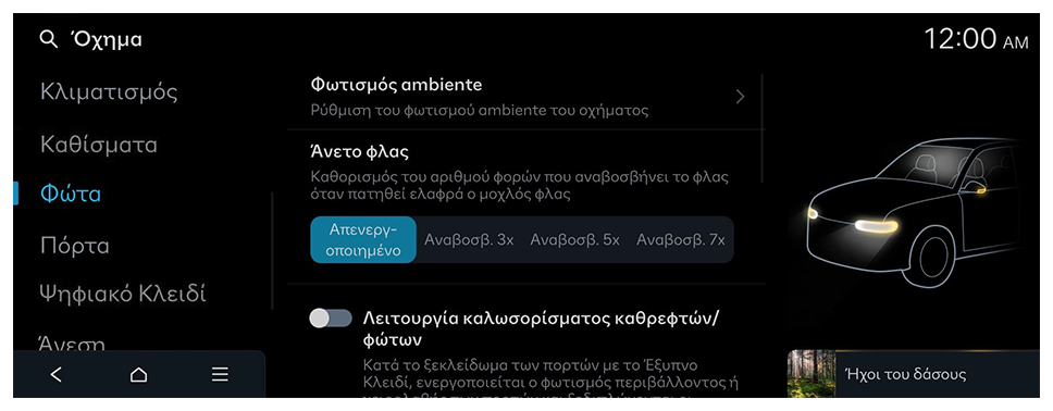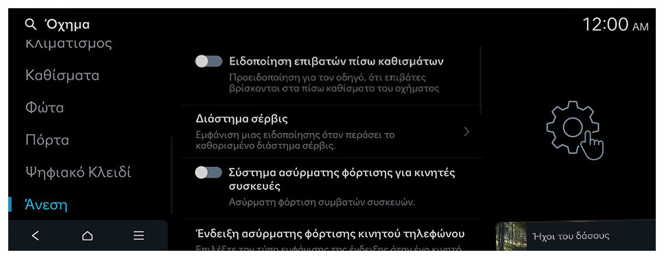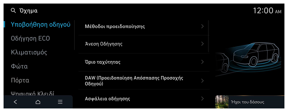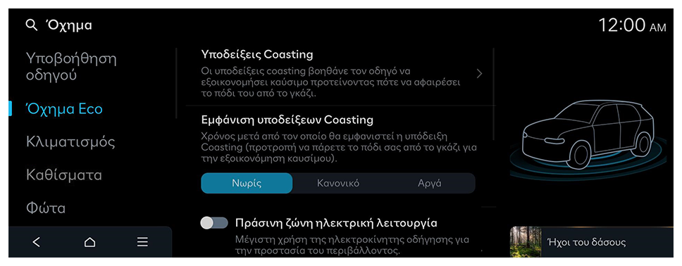 - Οι διαθέσιμες ρυθμίσεις ενδέχεται να διαφέρουν ανάλογα με το μοντέλο και τις προδιαγραφές του οχήματος.