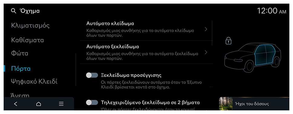 Επιλέξτε τις πόρτες που θα ξεκλειδώνουν όταν ο οδηγός πλησιάσει το όχημα με το Έξυπνο Κλειδί ή όταν πατηθεί το κουμπί της χειρολαβής της πόρτας.
