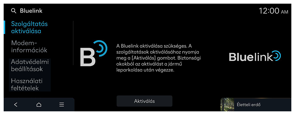 - A Kezdőképernyőn nyomja meg a Beállítások ► Bluelink ► Szolgáltatás aktiválása gombot.