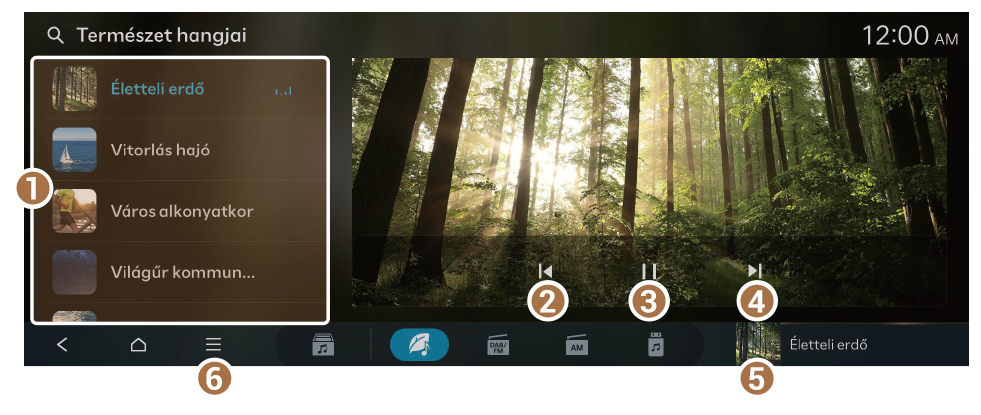 A médiamód megváltoztatása. Megkeresheti a kívánt elemet a Természet hangjai között, és lejátszhatja.