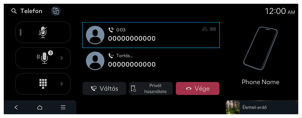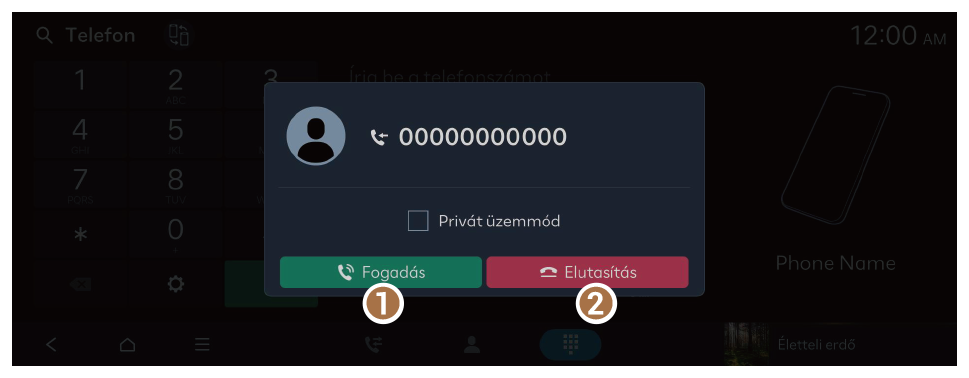 - A hívás fogadásához nyomja meg a képernyőn az Fogadás gombot, vagy nyomja meg a kormánykeréken lévő hívás gombot.