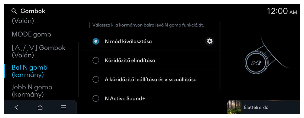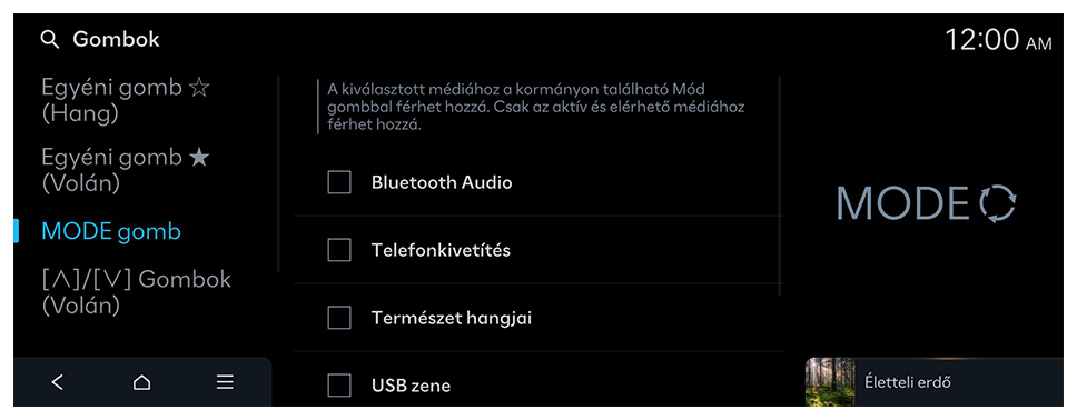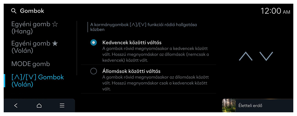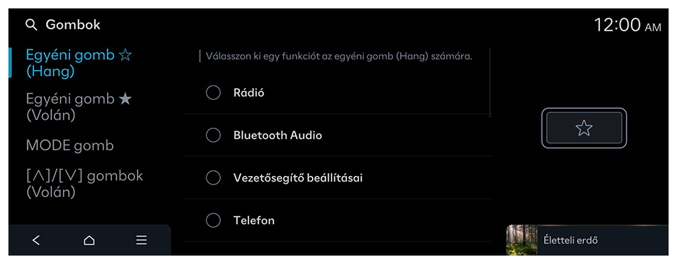 Beállíthatja a funkciókat, amelyeket a vezérlőpanelen vagy a kormánykeréken lévő gombok megnyomásakor aktivál.
