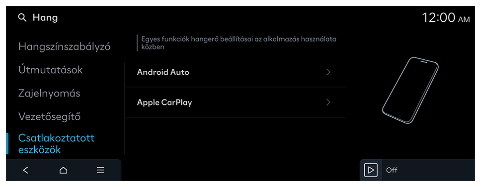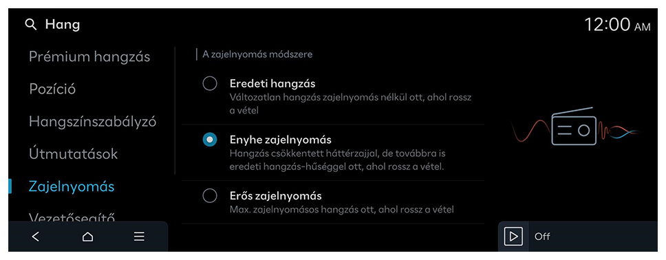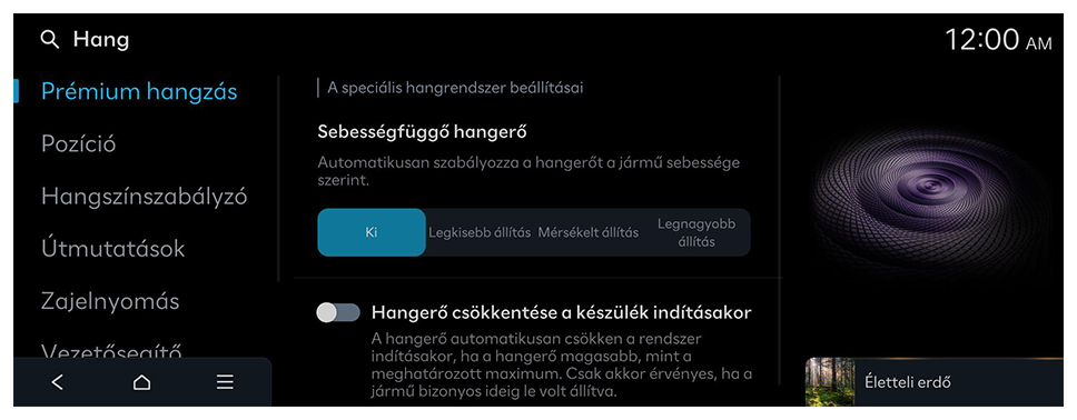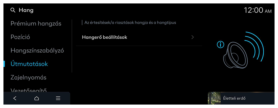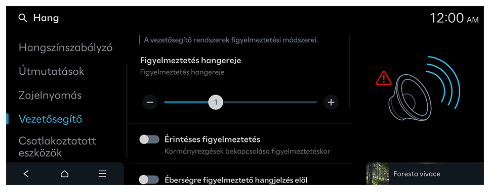 A rendszer minden egyéb hangot lehalkít, ha egy biztonsági rendszer figyelmeztetést ad.