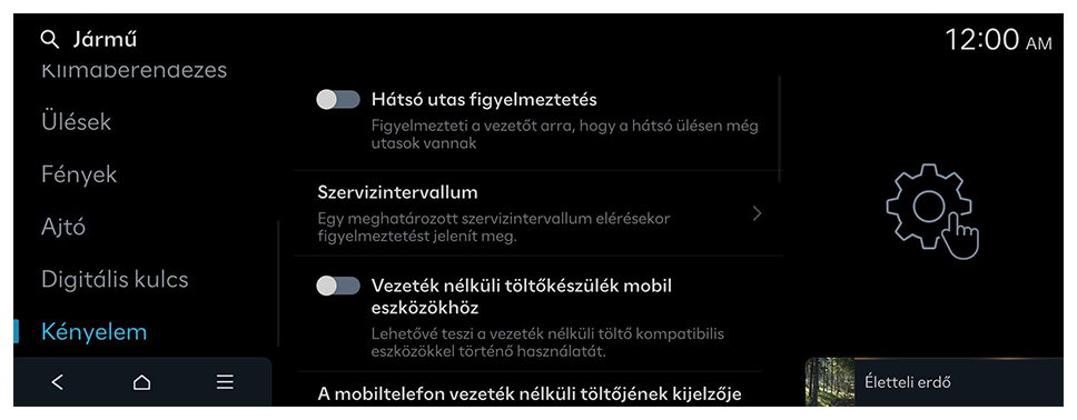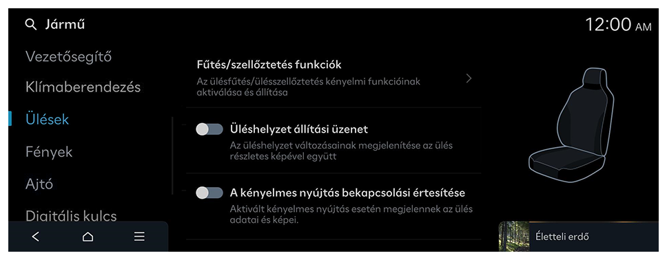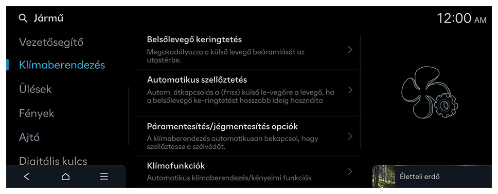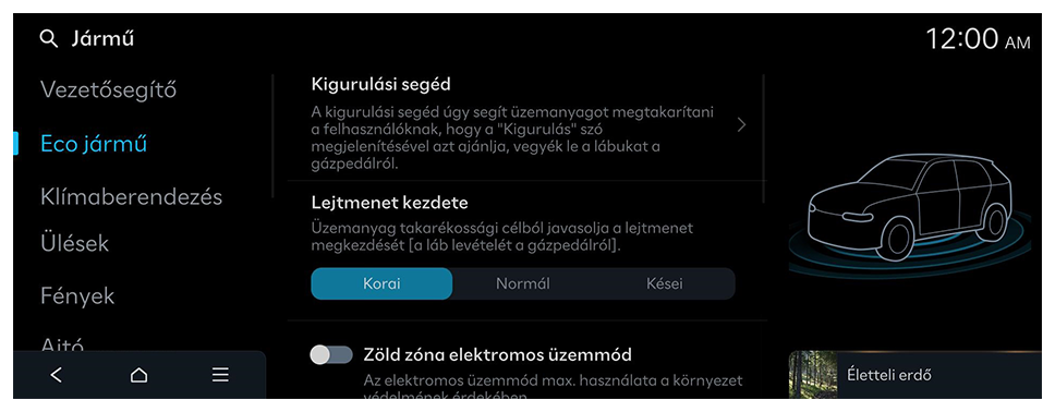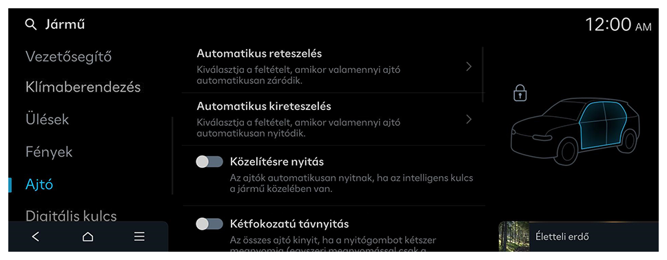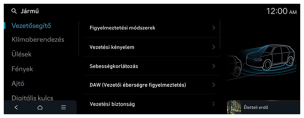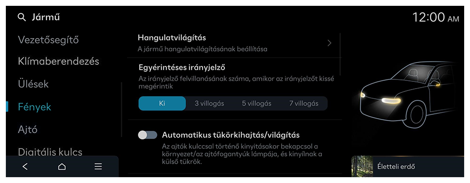 - Az elérhető beállítások a járműmodell és annak funkciói szerint eltérő lehet.