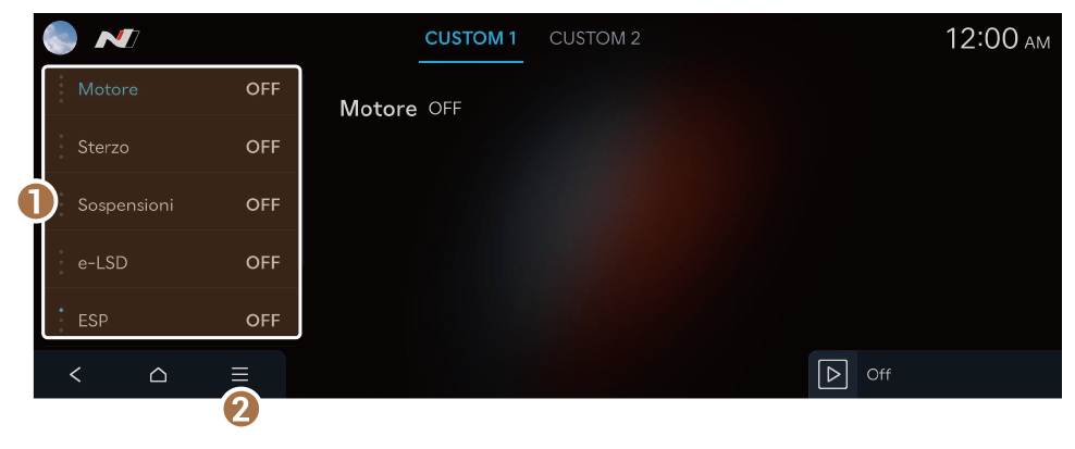 - Consente di selezionare le opzioni relative alle prestazioni del veicolo.
