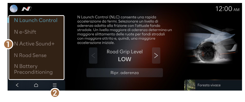 - Tutorial: consente di guardare i tutorial sulla guida in modalità N, ad esempio guida in pista ed economy.