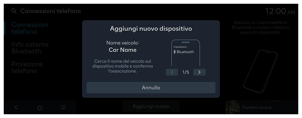 - Attivare il Wi-Fi e il Bluetooth sullo smartphone per connettere e selezionare il veicolo dall'elenco dei dispositivi Bluetooth analizzati.