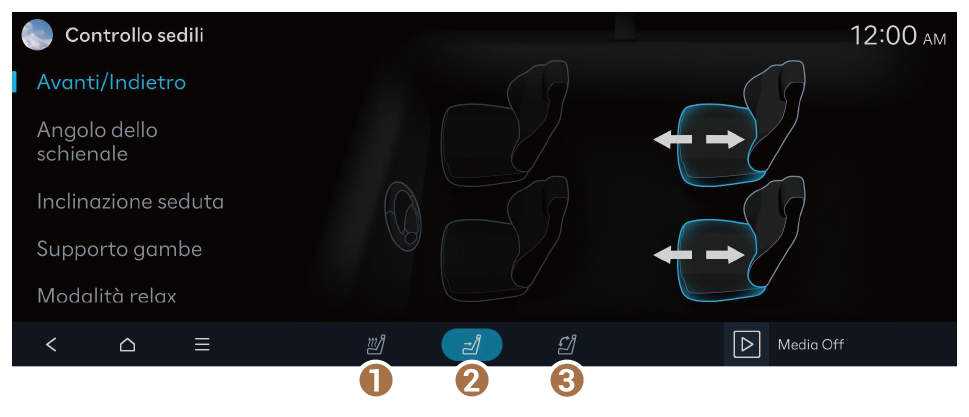 Nella schermata Home, premere Sedili.