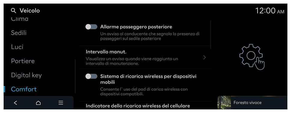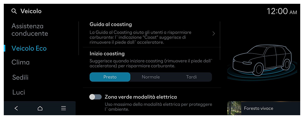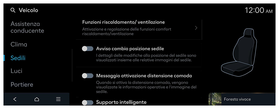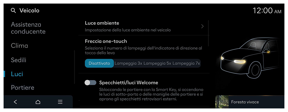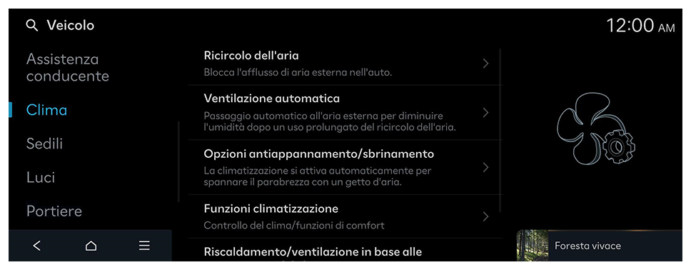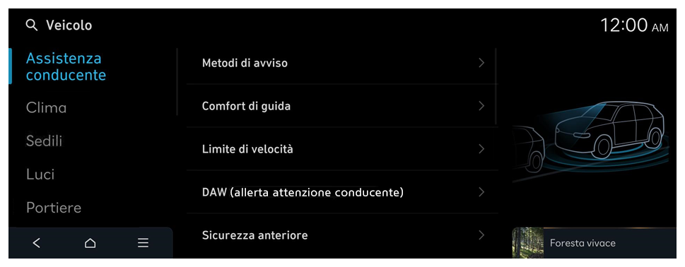 - Le impostazioni disponibili possono variare a seconda delle specifiche e del modello di veicolo.