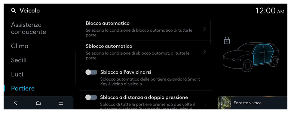 Selezionare le portiere da sbloccare quando il conducente si avvicina al veicolo con la Smart Key o preme il pulsante della maniglia della portiera.