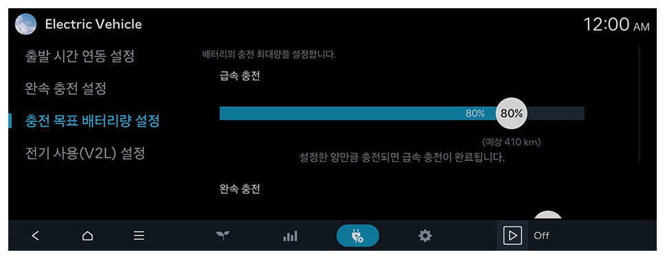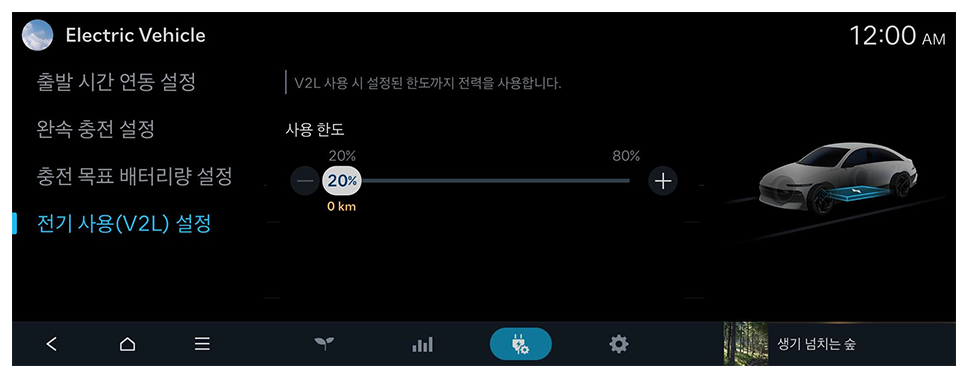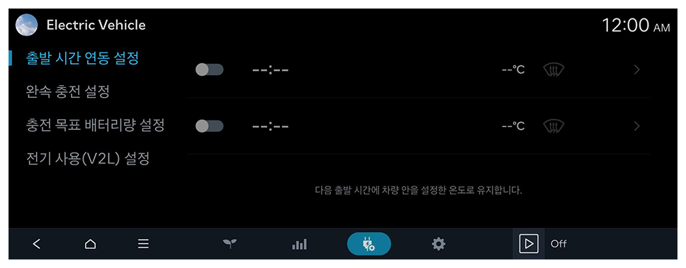 EV 차량에서 사용할 수 있는 편의 기능을 설정할 수 있습니다.