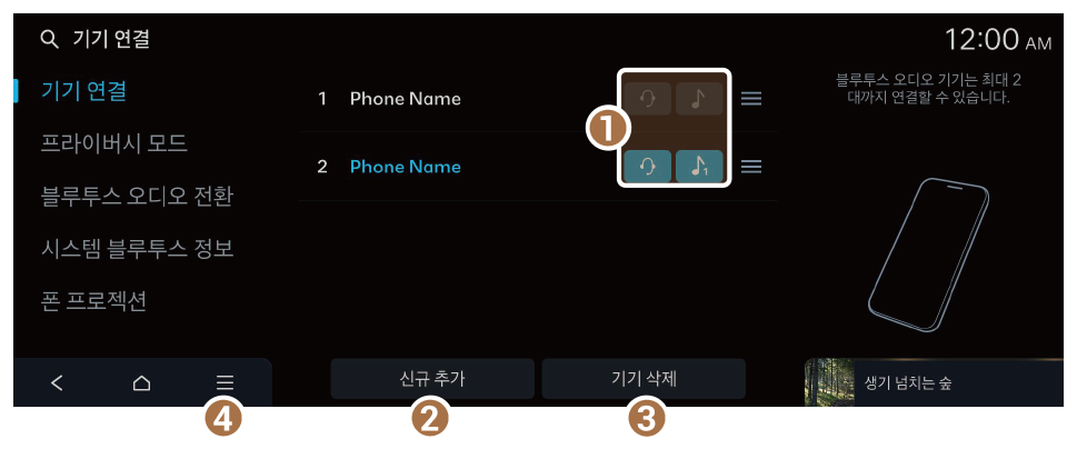 - 블루투스 기기는 최대 6개까지 등록할 수 있습니다.