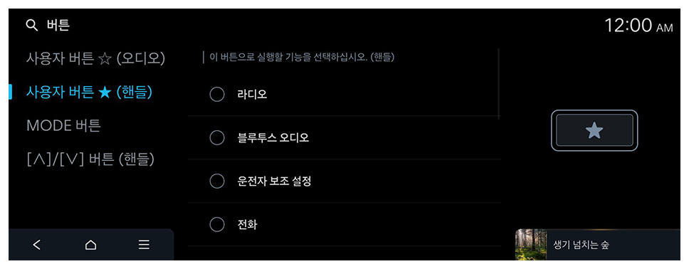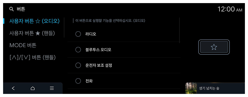 조작 패널이나 스티어링 휠의 버튼을 눌렀을 때 실행할 기능을 설정할 수 있습니다.