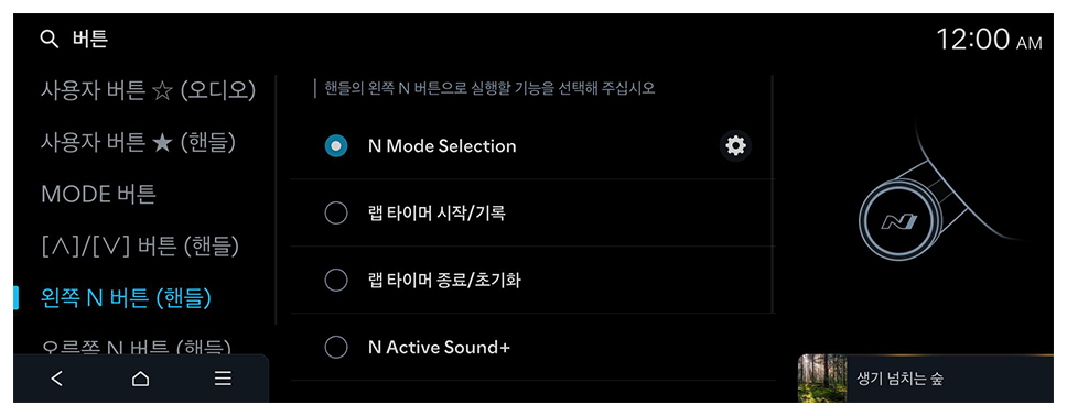 핸들의 왼쪽 N 버튼으로 실행할 기능을 선택해 주십시오.