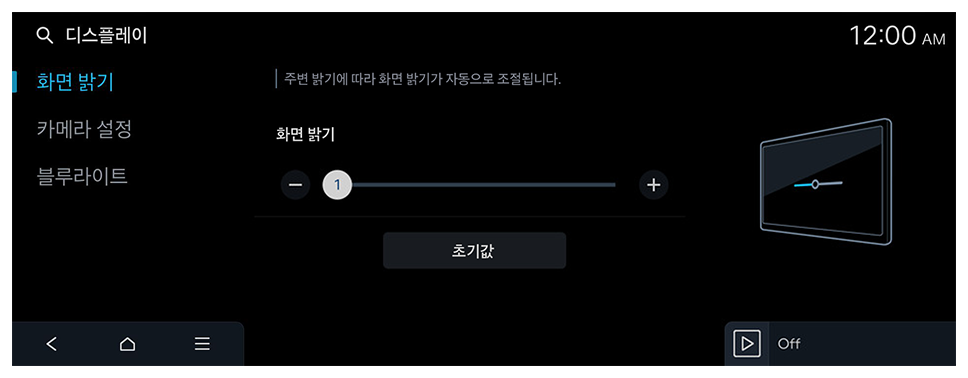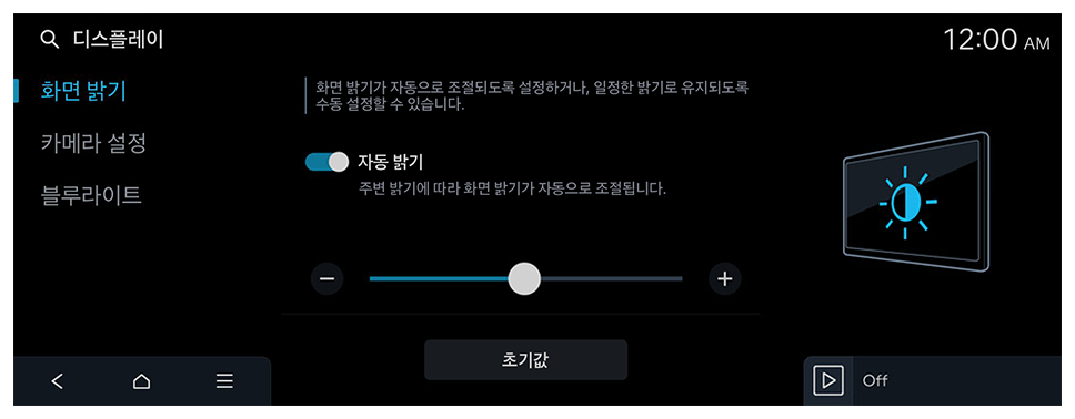 - 화면 밝기의 설정값을 모두 초기 상태로 변경하려면 초기값을 누르세요.