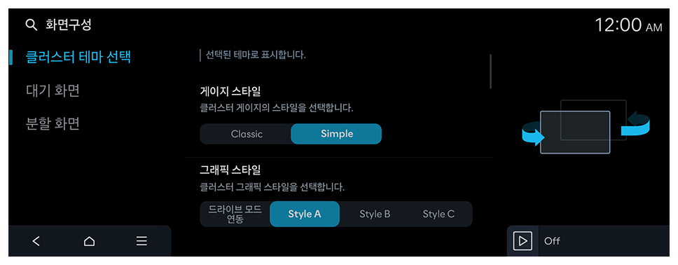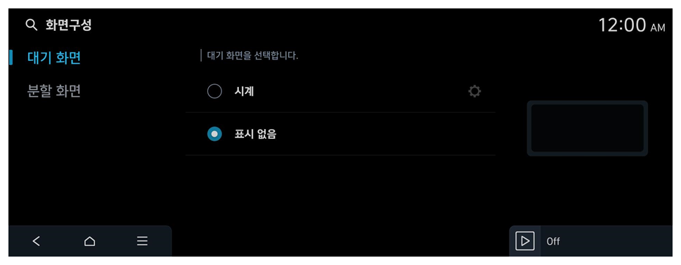 대기 화면, 분할 화면 등 시스템 화면 구성에 관련된 환경을 설정할 수 있습니다.