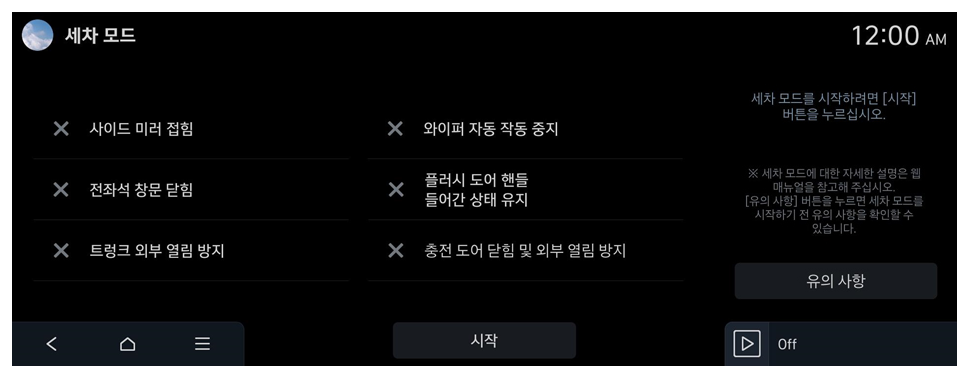 세차 모드를 시작하기 전에