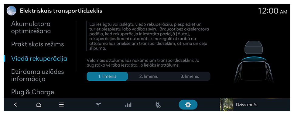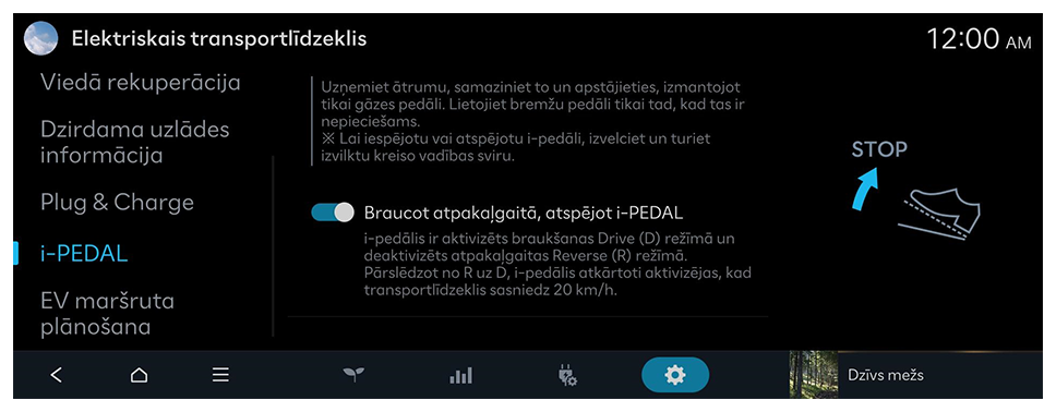 - Lai ieslēgtu vai izslēgtu viedo rekuperāciju, piespiediet un turiet piespiestu labo vadības sviru.