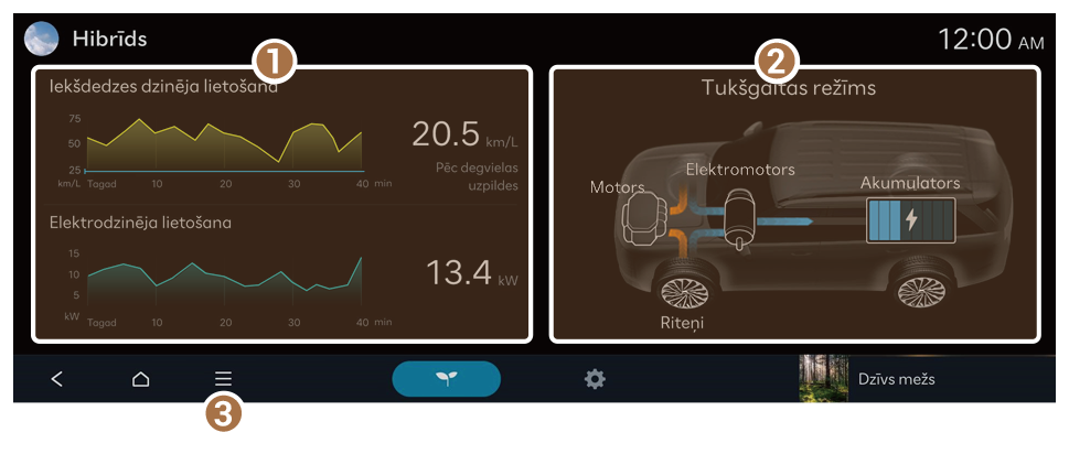 ![]() | Uzlāde tiek veikta gan ar bremzēšanas palēninājuma enerģiju, gan dzinēja jaudu |