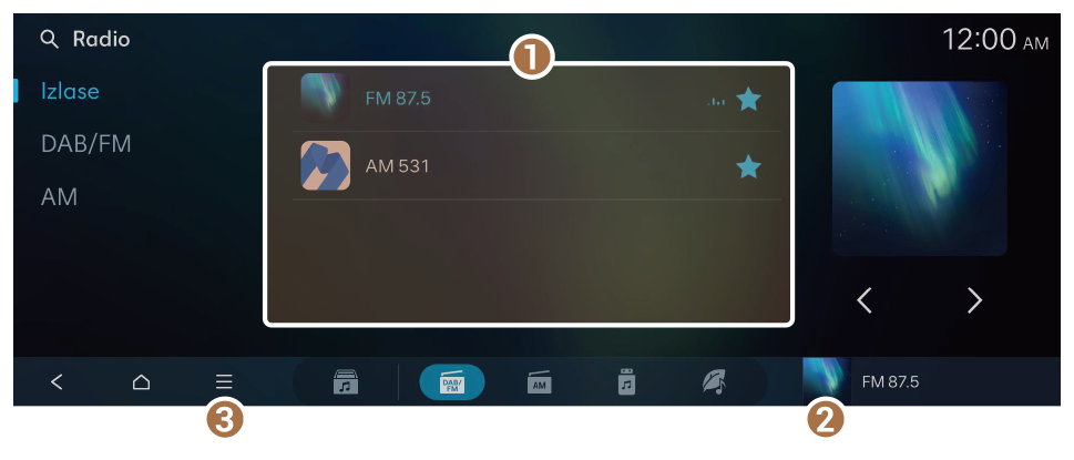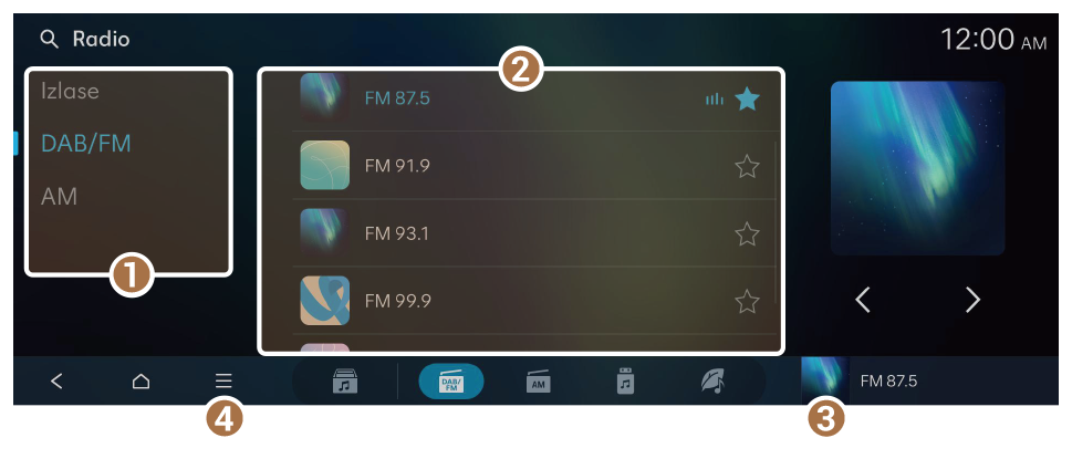 - Parāda DAB/FM atskaņotāja ekrānu.