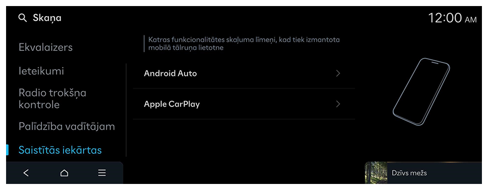 Visu pārējo skaņas skaļuma samazināšana, kad tiek atskaņots braukšanas drošības brīdinājuma skaņas signāls