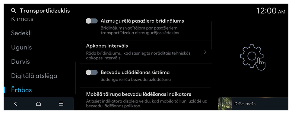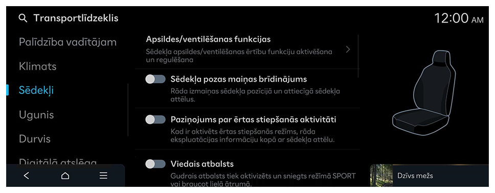 - Pieejamie iestatījumi var atšķirties atkarībā no transportlīdzekļa modeļa un specifikācijām.