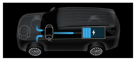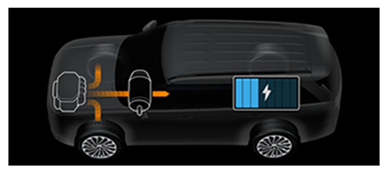 Įkraunama naudojant ir lėtėjimo energiją stabdant, ir benzininio variklio galią