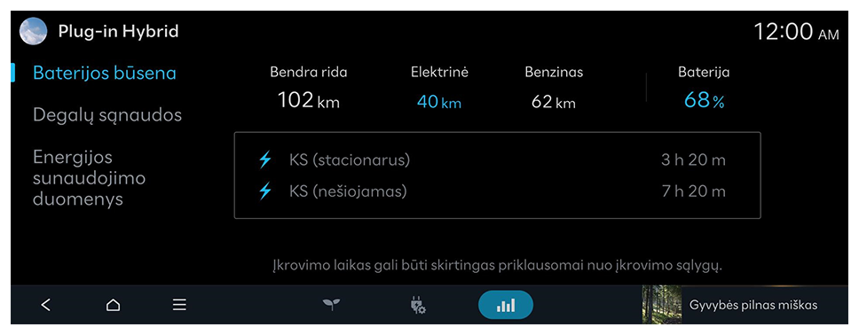 Galite matyti galimą nuvažiuoti atstumą ir numatomą įkrovimo laiką.