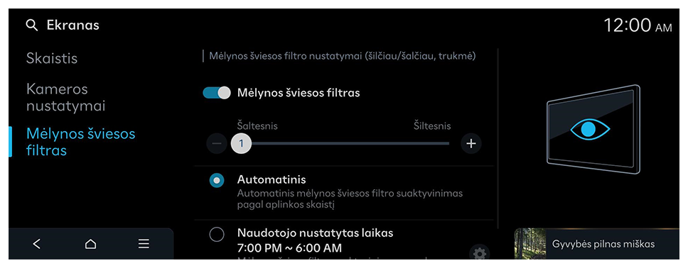 Ekrano skaistį galima reguliuoti automatiškai arba rankiniu būdu.