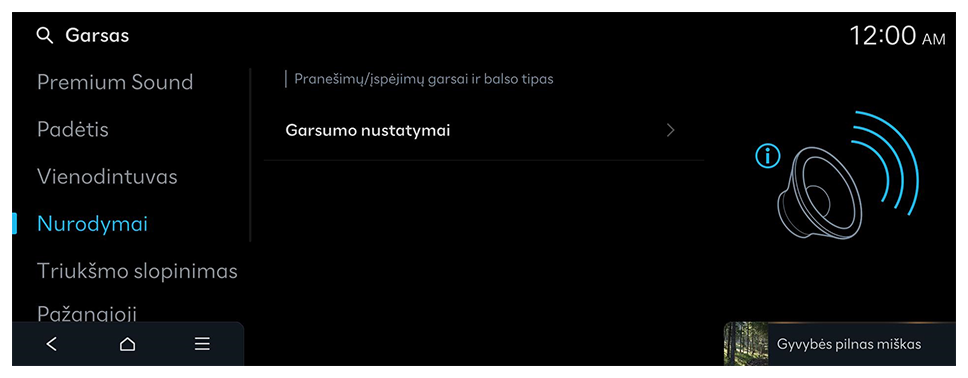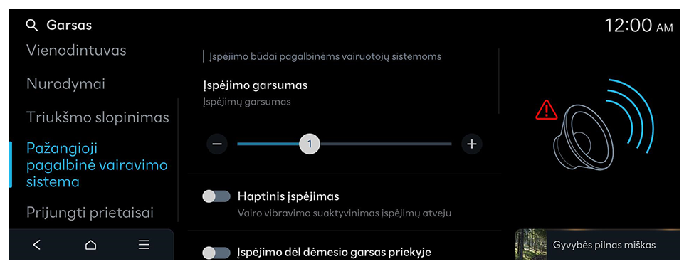 Visų kitų garso signalų garsumas sumažinamas, kai pateikiamas vairavimo saugos įspėjamasis garsas.