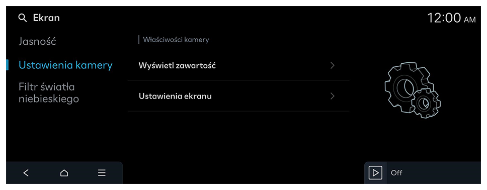 Widok z tylnej kamery jest wyświetlany również po zmianie biegu z R na N lub D i zostanie wyłączony po osiągnięciu określonej prędkości. (Tylko pojazdy wyposażone w tylną kamerę)