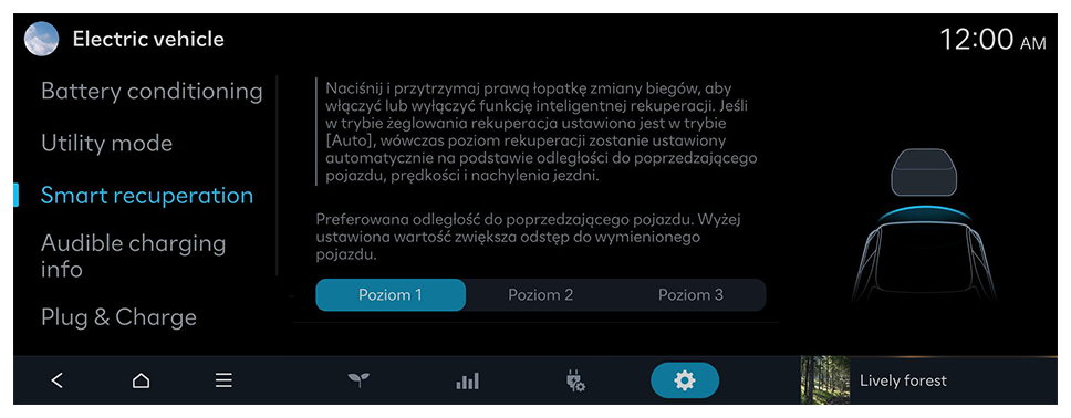 - Naciśnij i przytrzymaj prawą łopatkę zmiany biegów, aby włączyć lub wyłączyć funkcję inteligentnej rekuperacji.