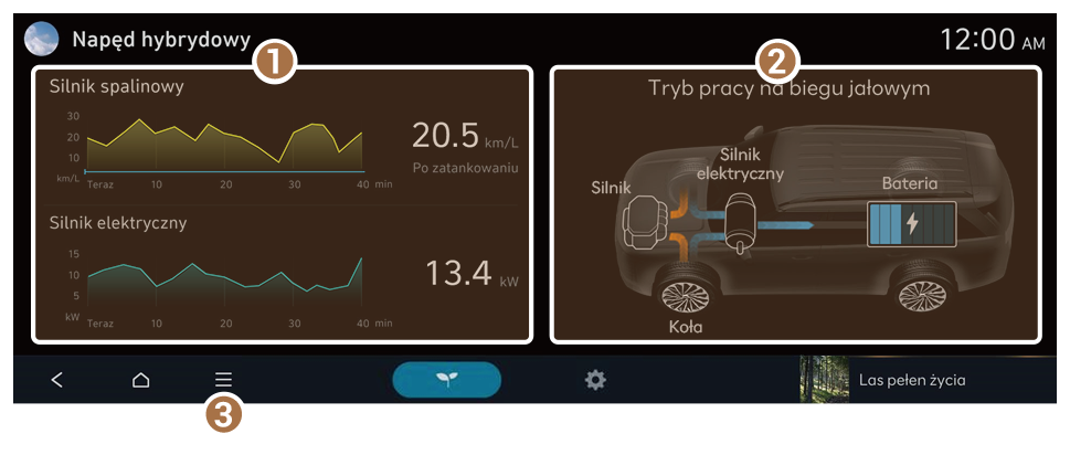 ![]() | Ładowanie z wykorzystaniem mocy silnika spalinowego w trybie czuwania |