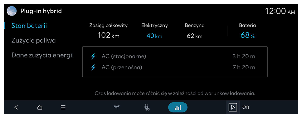 ![]() | Ładowanie z wykorzystaniem mocy silnika spalinowego w trybie czuwania |