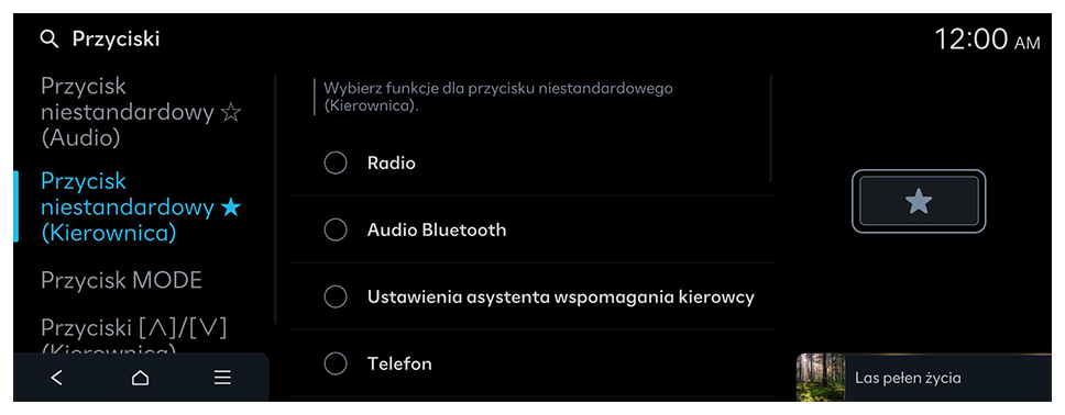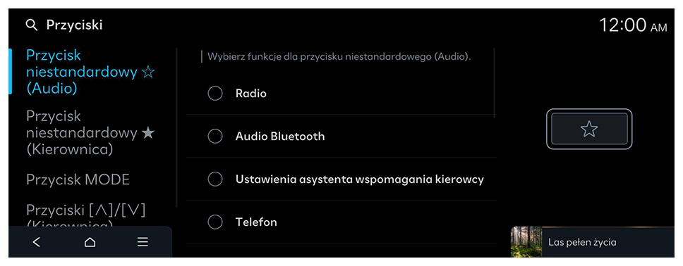 Wybór funkcji dla przycisku niestandardowego (Audio).