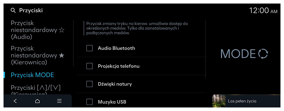 Konfiguracja funkcji, które mają być aktywowane po naciśnięciu przycisków na panelu sterowania lub kierownicy.