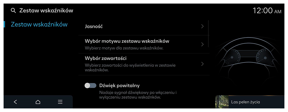- Dostępne ustawienia mogą się różnić w zależności od modelu i specyfikacji pojazdu.
