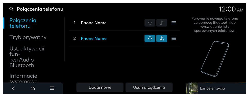 Parowanie nowego telefonu za pomocą Bluetooth lub wyświetlanie listy sparowanych telefonów.