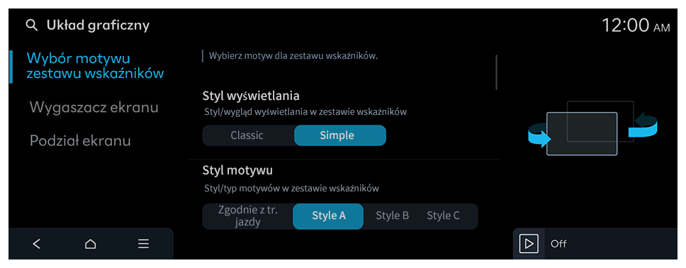 - Dostępne ustawienia mogą się różnić w zależności od modelu i specyfikacji pojazdu.
