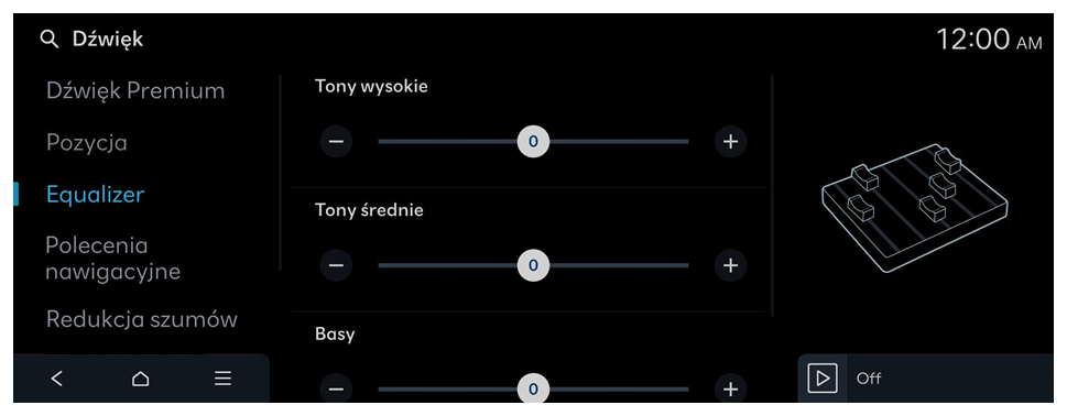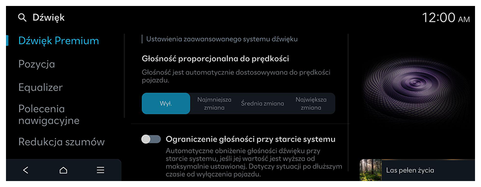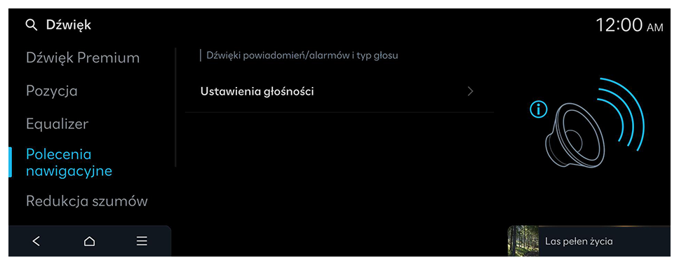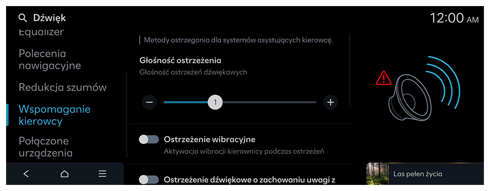 Aktywacja dźwięku ostrzeżenia dla funkcji bezpieczeństwa na pasie ruchu. Nie można aktywować dźwięku ostrzeżenia przy wyłączonym ostrzeżeniu haptycznym.