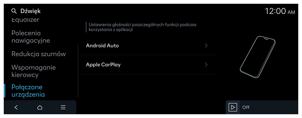 Obniżenie głośności wszystkich dźwięków audio, gdy aktywny jest widok układu wspomagania parkowania.