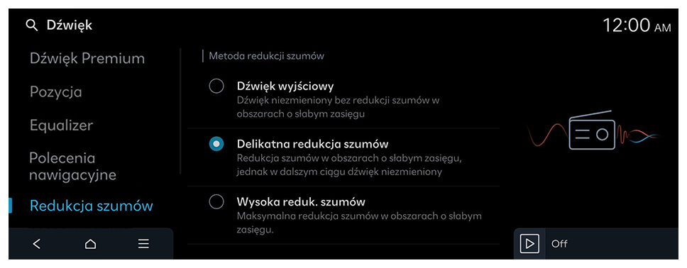 Obniża głośność pozostałych źródeł dźwięku w czasie ostrzeżenia systemu bezpieczeństwa.