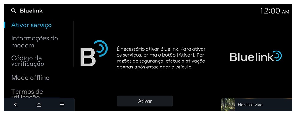 - No ecrã inicial, prima Definições ► Bluelink ► Ativar serviço.