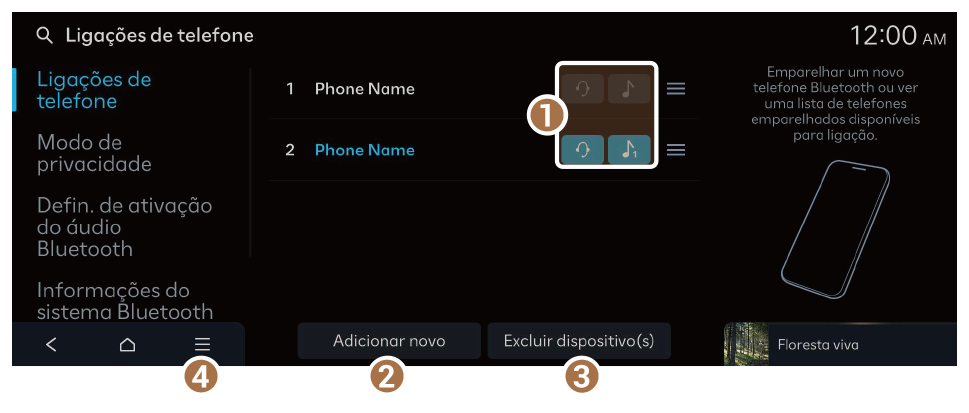 Para ligar um dispositivo Bluetooth ao sistema, primeiro é necessário adicionar o dispositivo à lista de dispositivos Bluetooth presente no sistema.