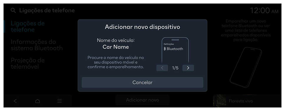 - É possível encontrar o nome do dispositivo Bluetooth do sistema na janela "Adicionar novo dispositivo" apresentada.