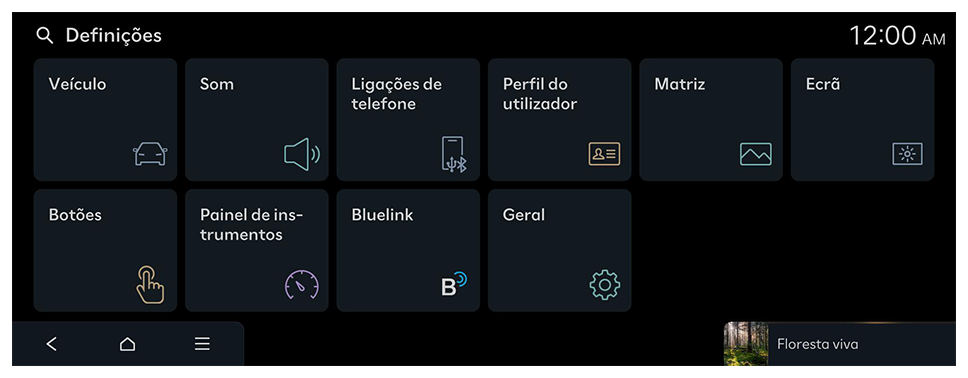 no ecrã ou prima o botão [SEARCH] no painel de controlo, introduza um termo de pesquisa e, depois, selecione o item para avançar. - As definições disponíveis podem ser diferentes dependendo do modelo e especificações do veículo.