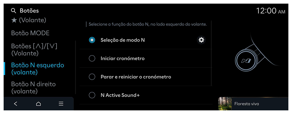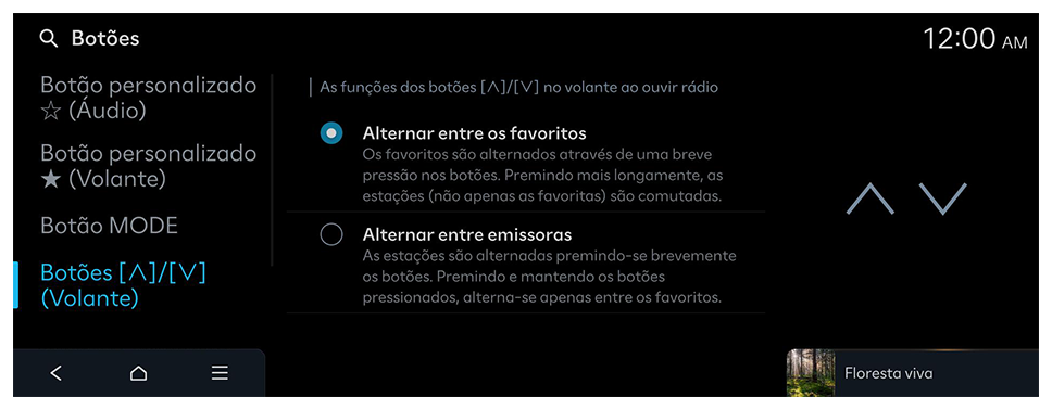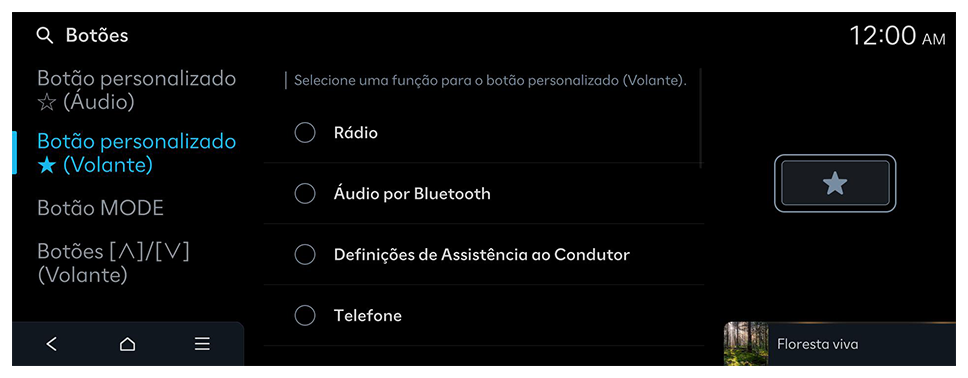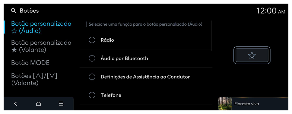 Selecione uma função para o botão personalizado (Audio).